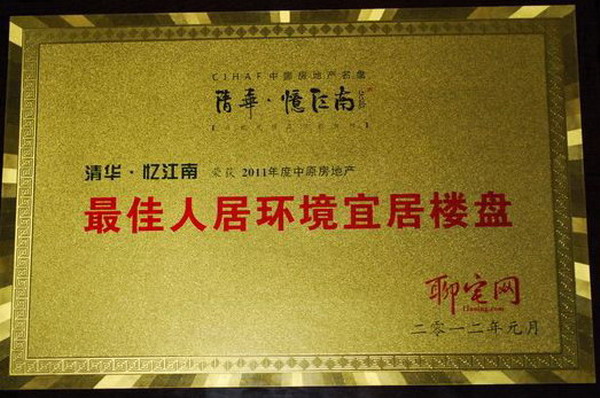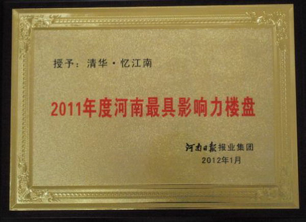 清华·忆江南荣获“2011年度河南最具影响力楼盘”称号