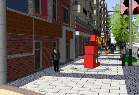 特色:本设考虑用地范围,在设计上运用色彩的功能,打造富有意大利风情的商业氛围,同时考虑到人性的设计。